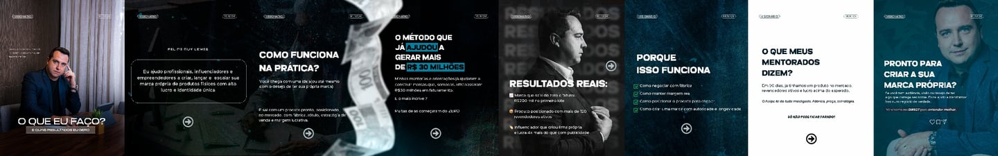 Felipe Ruy Lemes é mais do que um mentor. É um criador de marcas com DNA empreendedor e visão de mercado. Com uma trajetória marcada pela prática, Felipe já construiu marcas tão poderosas que, somadas, ultrapassam R$30 milhões em faturamento — tudo com estratégia, posicionamento e execução.